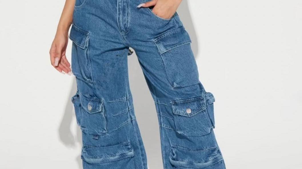 Jeans cargo bolsas atras